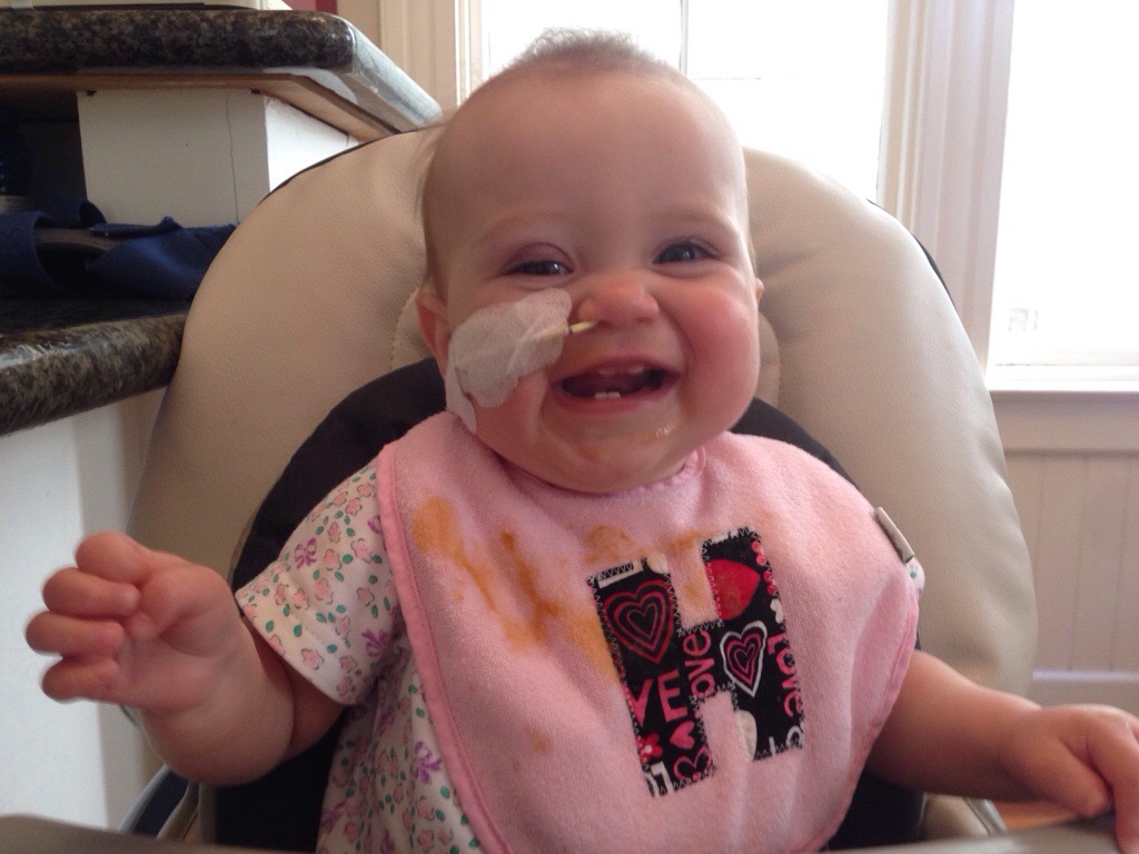 Today there were three vomits (so far). Two very, very small ones and one very large one. Sometimes I think that if I can just get the right balance of volume, calories, feeding rates, positions, sleep positions, timing of meds then she won’t vomit, she will gain weight and thrive. Or, maybe she is vomiting a lot because of her heart and that is the part that I am in denial about.
