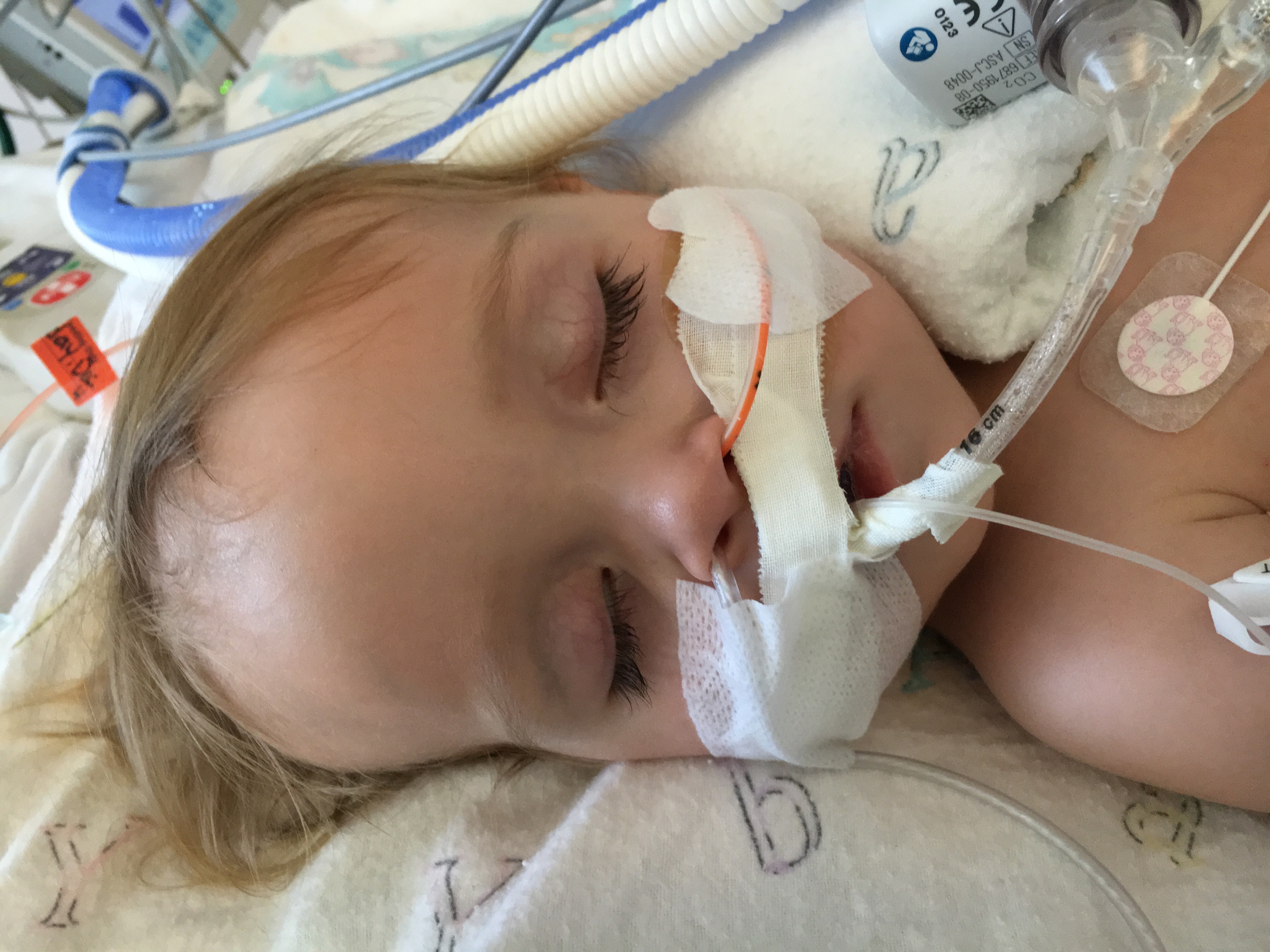 Not too much has changed since yesterday. Hana’s heart rate was getting high in the evening but the attending physician assured me they would be watching Hana like a hawk – he also happens to be the head of cardiology. Today they did rounds without me because it was so quick and they made no changes. Hana is on versed, precedex, morphine, dopamine and milrinone. She is getting tube fed a lot – 50mL/hour. We are just waiting for Monday.