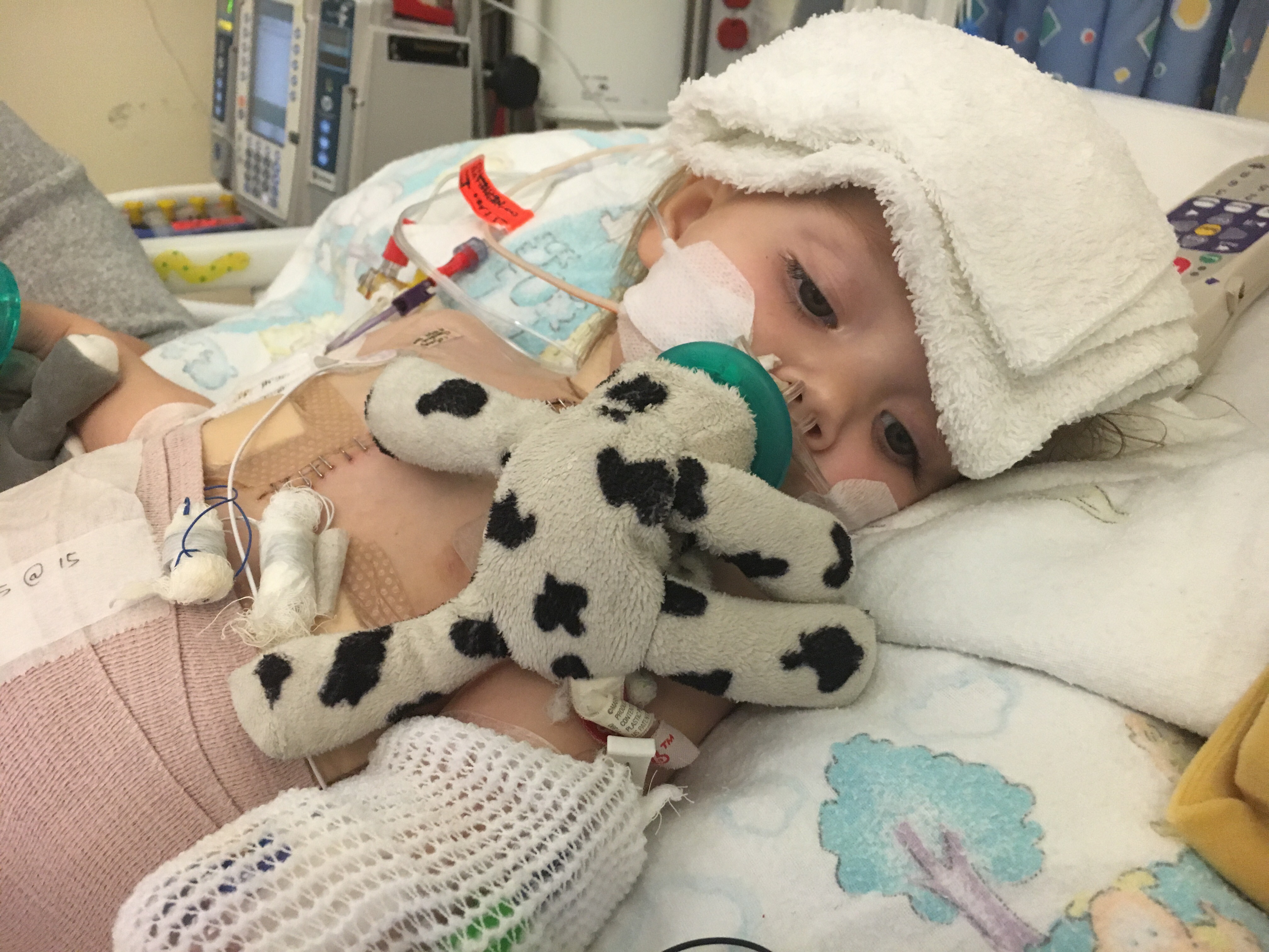 Today they are continuing to wean Hana’s Precedex (dexmedetomidine) drip. Her clonidine patch should be effective so they can start to wean a little faster. Overall she is a little overly sedated. We are trying to be careful that Hana doesn’t get her days and nights mixed up! Last night she was wide awake and playful at 10pm. They are also increasing her aspirin to 3 baby aspirin a day (crushed, mixed with water and sent down her feeding tube). Since they took out her arterial line yesterday, Hana must have blood drawn peripherally- the way we all do, with a needle stick. This will still happen every day for a while until her results are stable and then she will only do it it twice a week.