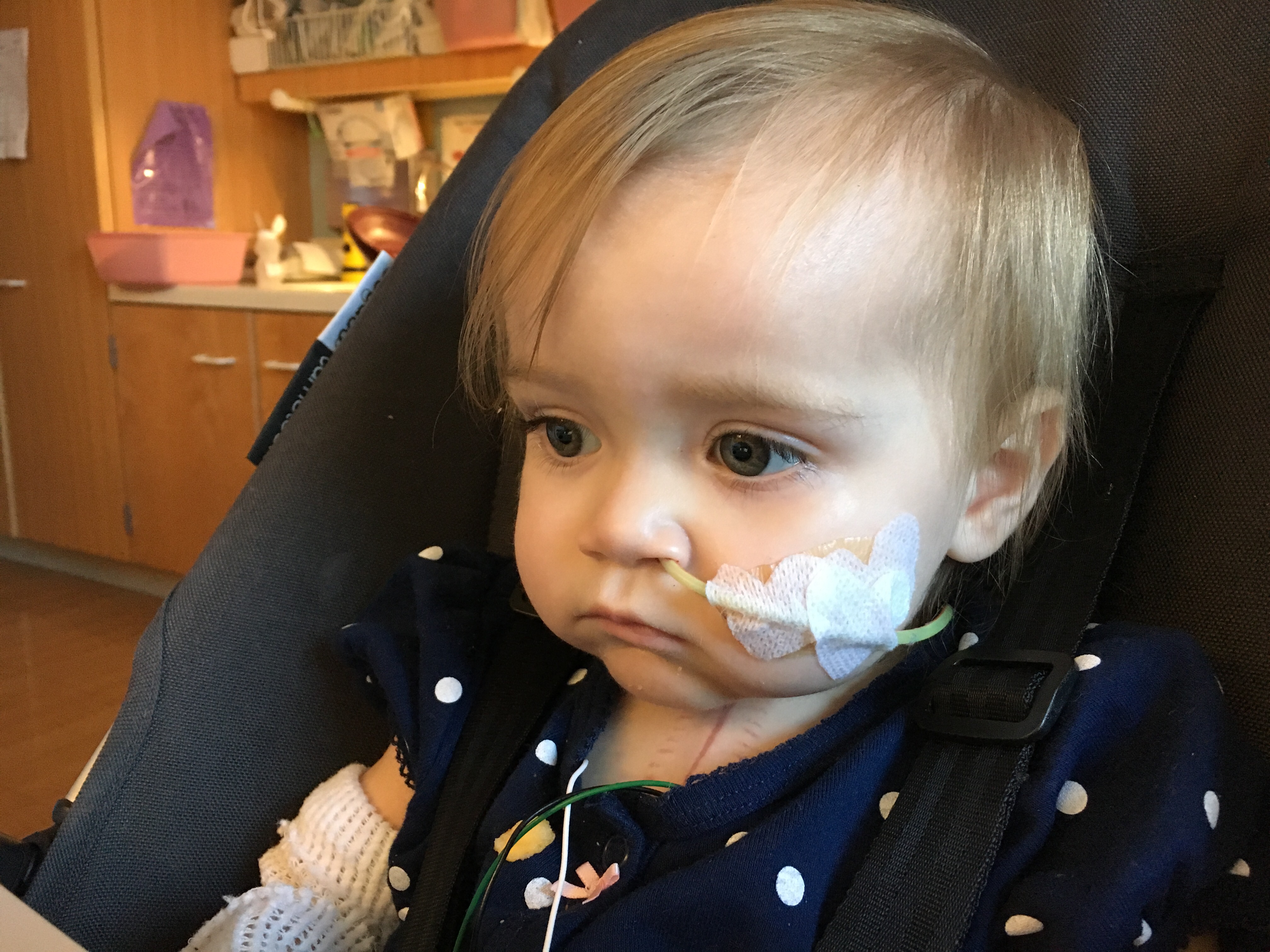 Hana continues to do well. I’m starting to feel better myself. Right now, Hana seems to be getting three teeth at once and one of them is a molar so there is quite a bit of fussiness. She is only allowed to get Tylenol to help with the teething. Today she also had more bloodwork and hopefully we are getting on a more normal routine although one of her levels came back high so they may have to repeat one test tomorrow. They did decide to test her BNP level, which is a measurement of heart failure (although not a very reliable test in children). Hana’s was 388 which is the lowest it has ever been since we discovered her heart condition.
