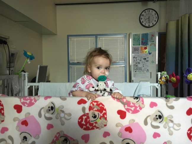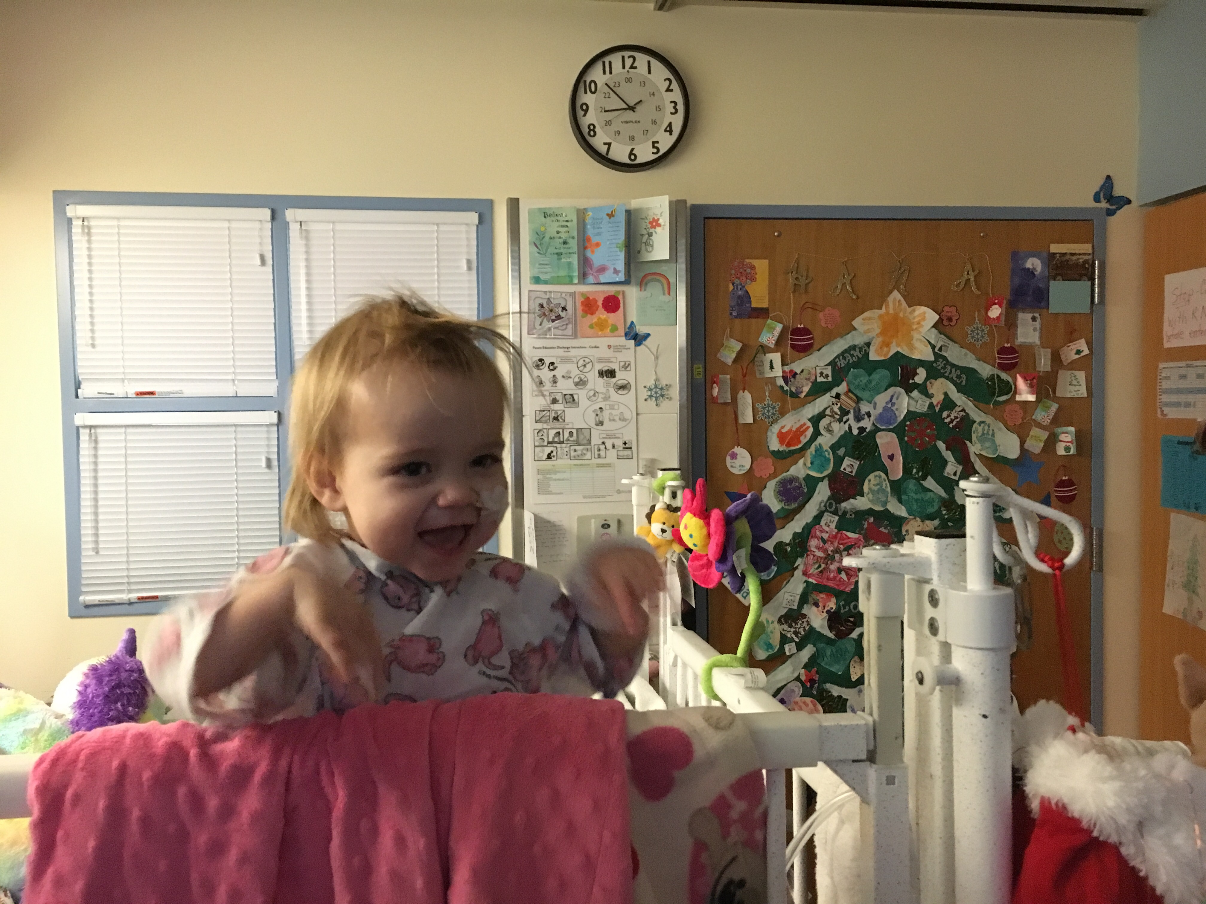 It was a month ago, Christmas Eve, that Hana was transferred to 3 West from the CVICU. She turned 17-months this past week. Things are moving along. The IVIG therapy was relatively uneventful other than a teething, very fussy, very bored 17-month old had to stay still for 24 hours. That’s kind of hard and requires marathon patience. She did throw up a lot. I think our day nurse felt bad for me but it was okay. Part of what made it okay was I knew that on Saturday night we were going home to sleep (and see Poppy). Although the night the IVIG was running I got pretty good sleep and probably only had to get up six times.