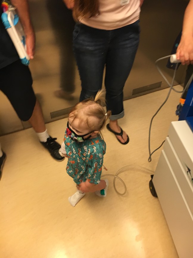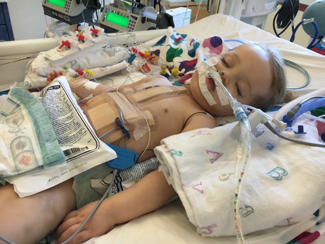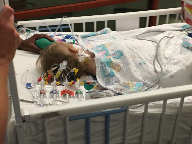 Everything is going really great. They have things they are “concerned” about which just means they watch and make adjustments for, but overall they are not concerned and they think she is doing great. Some “concerns” are her CVPs (central venous pressure) which have been high around 14. They want it to be closer to 10. This means there is more pressure on the right side of her heart. This is why she is getting Lasix to offload fluid. In addition, they have her hooked up to a pacemaker. Her heart rate is set to 140. Her blood pressure was low, due to the precedex but is coming up nicely now that they’ve taken her off of it.