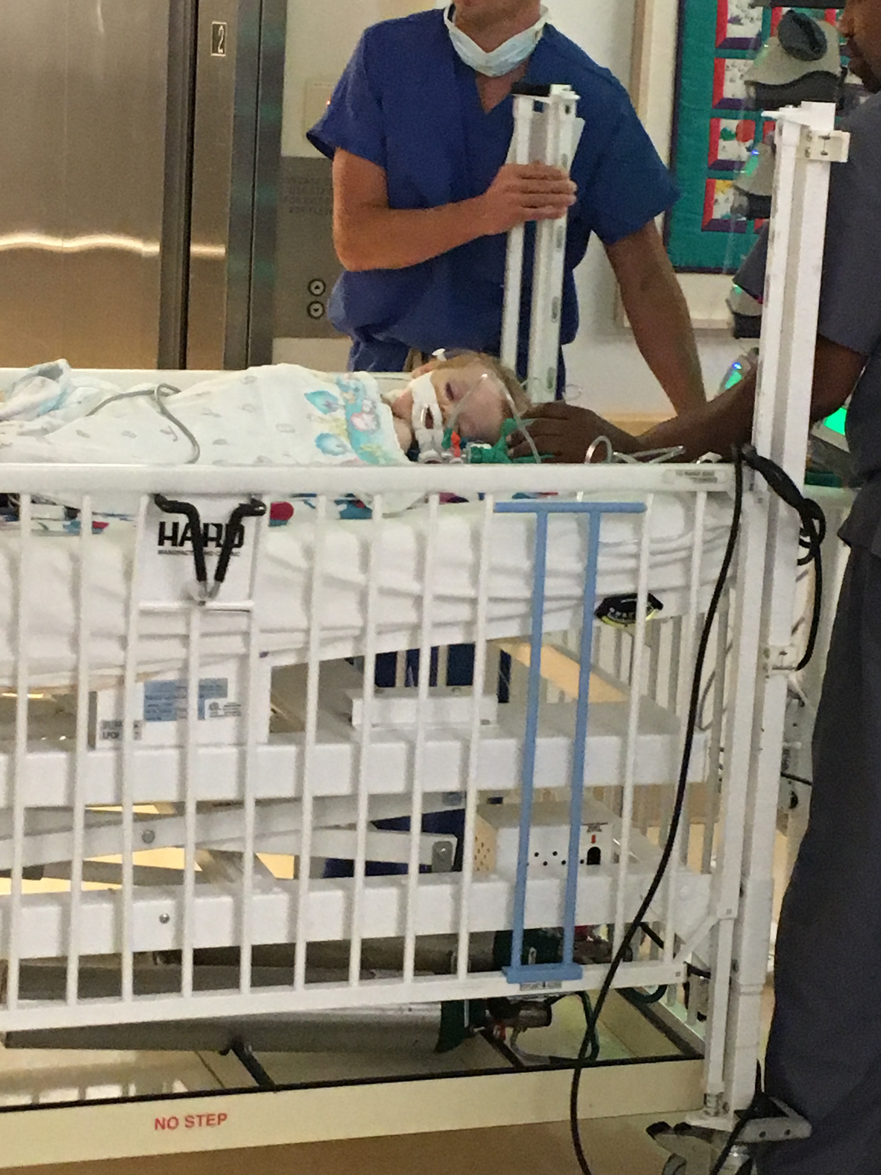 After sleeping for a few hours we got up to check on Hana around 8:30. Apparently, she had tried to climb out of bed! This is actually not good because she needs to stay more sedated and still, especially while having a breathing tube.