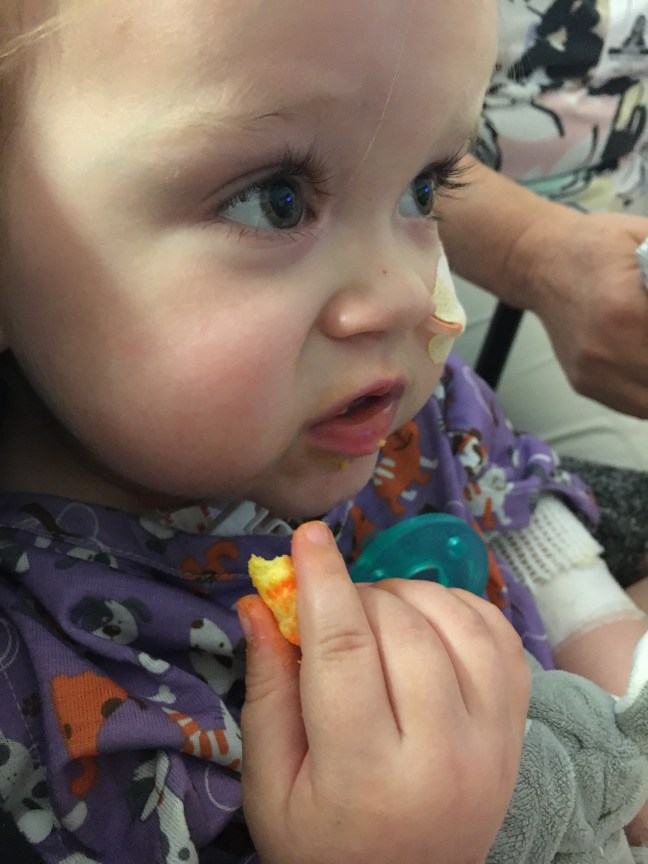 Other than all that we are just waiting around. Hana has started to eat a little. She is definitely showing more interest in food. It makes me want to cry tears of joy. I know a lot of parents stress about their young children not eating very much. Hana has never been an eater. I don’t think she’s ever eaten more than a tablespoon of food (and that was a very rare occasion). I hope she is getting ready to turn a corner!