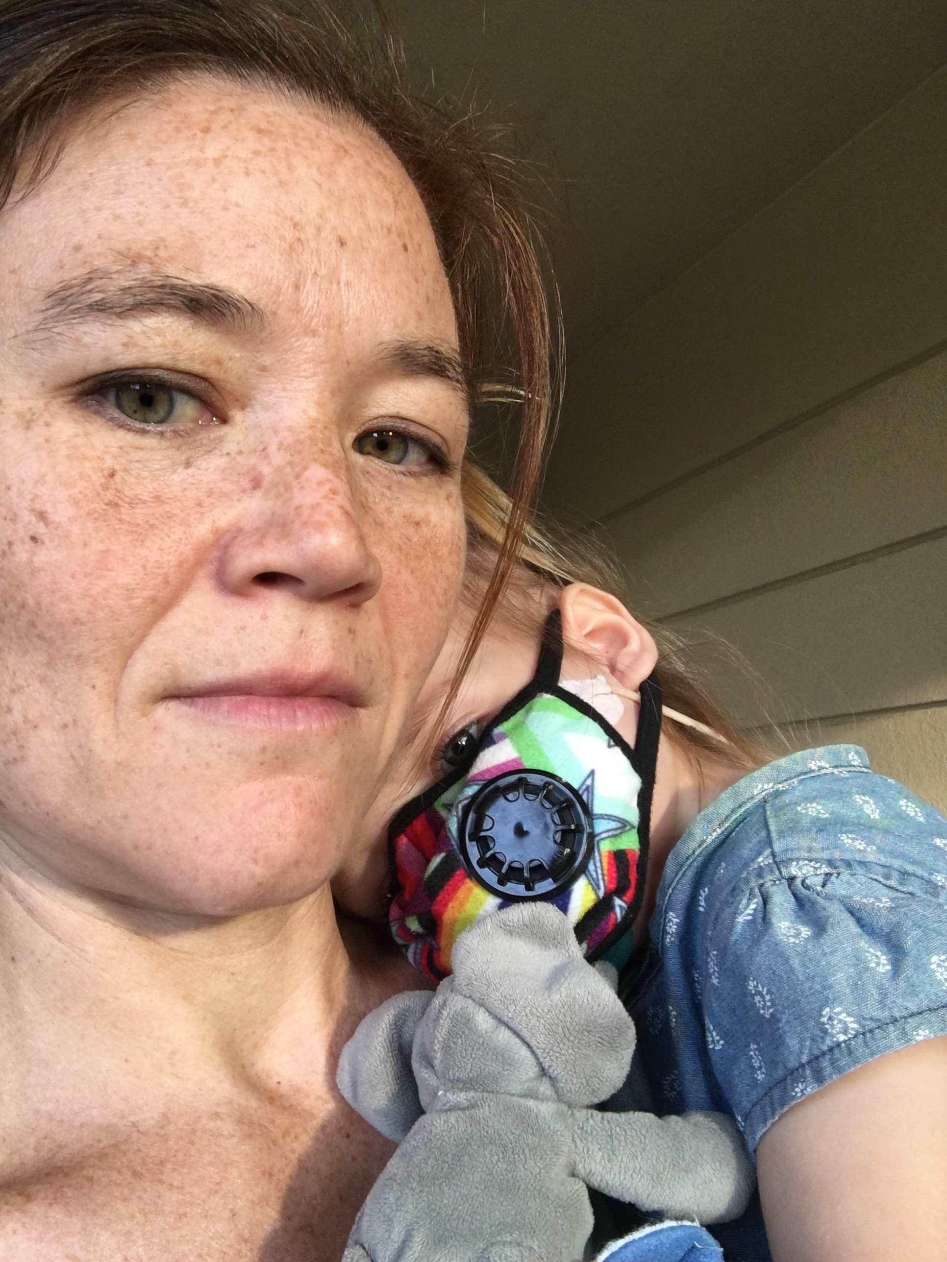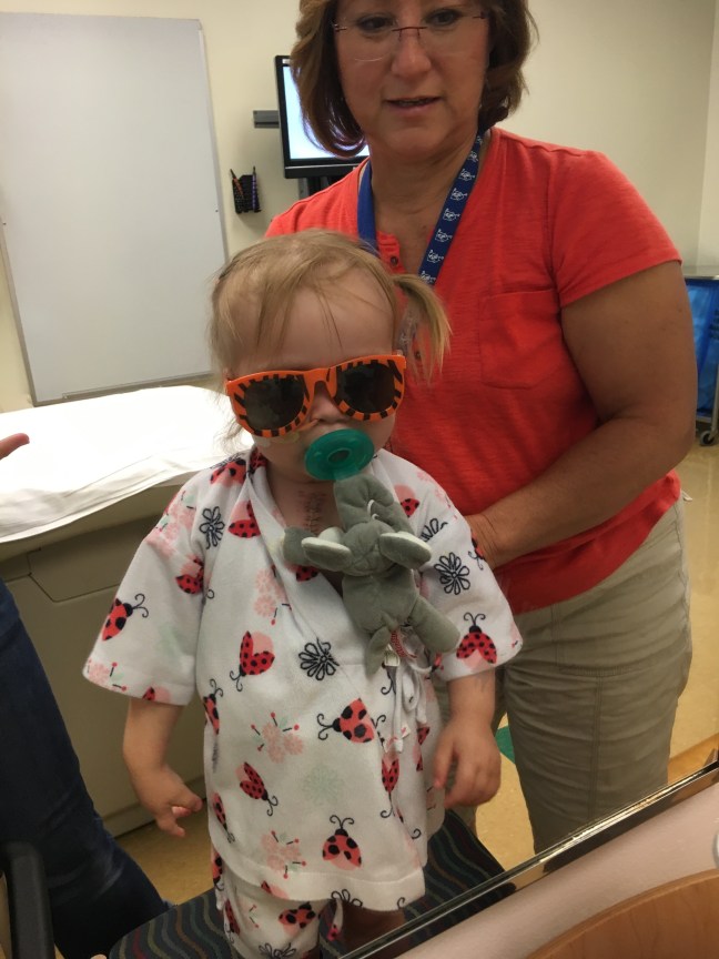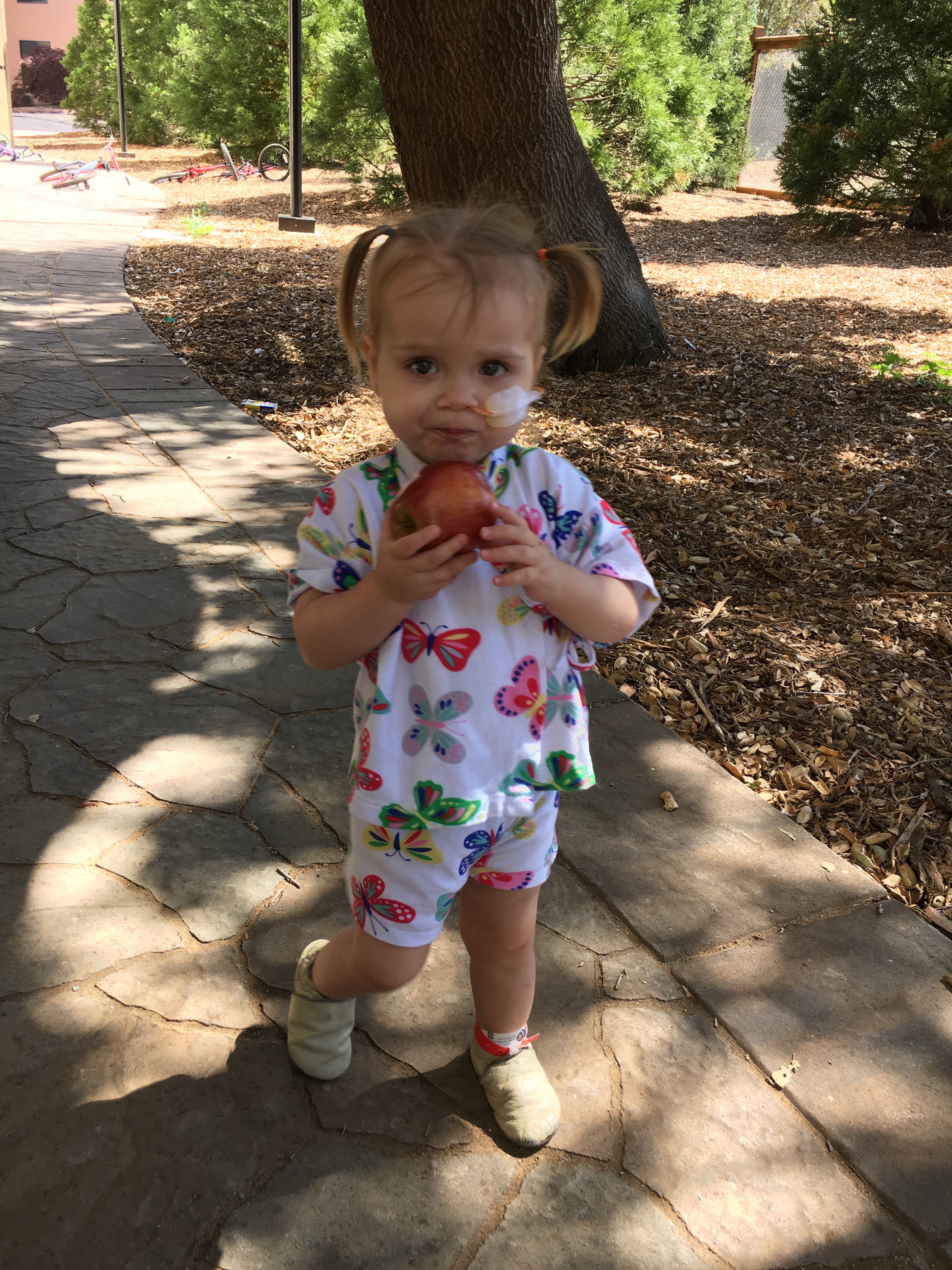 In other news, Hana continues to do well. She loves being outside more than anything (she always did, even as a little baby). She likes watching the big kids play! She had speech therapy at the outpatient clinic, which went very well. She has been enjoying time with my parents who are getting ready to leave over the next couple of days. She is starting to nibble on food more often! She seems very happy! (Thank you to whoever sent the new mask!)