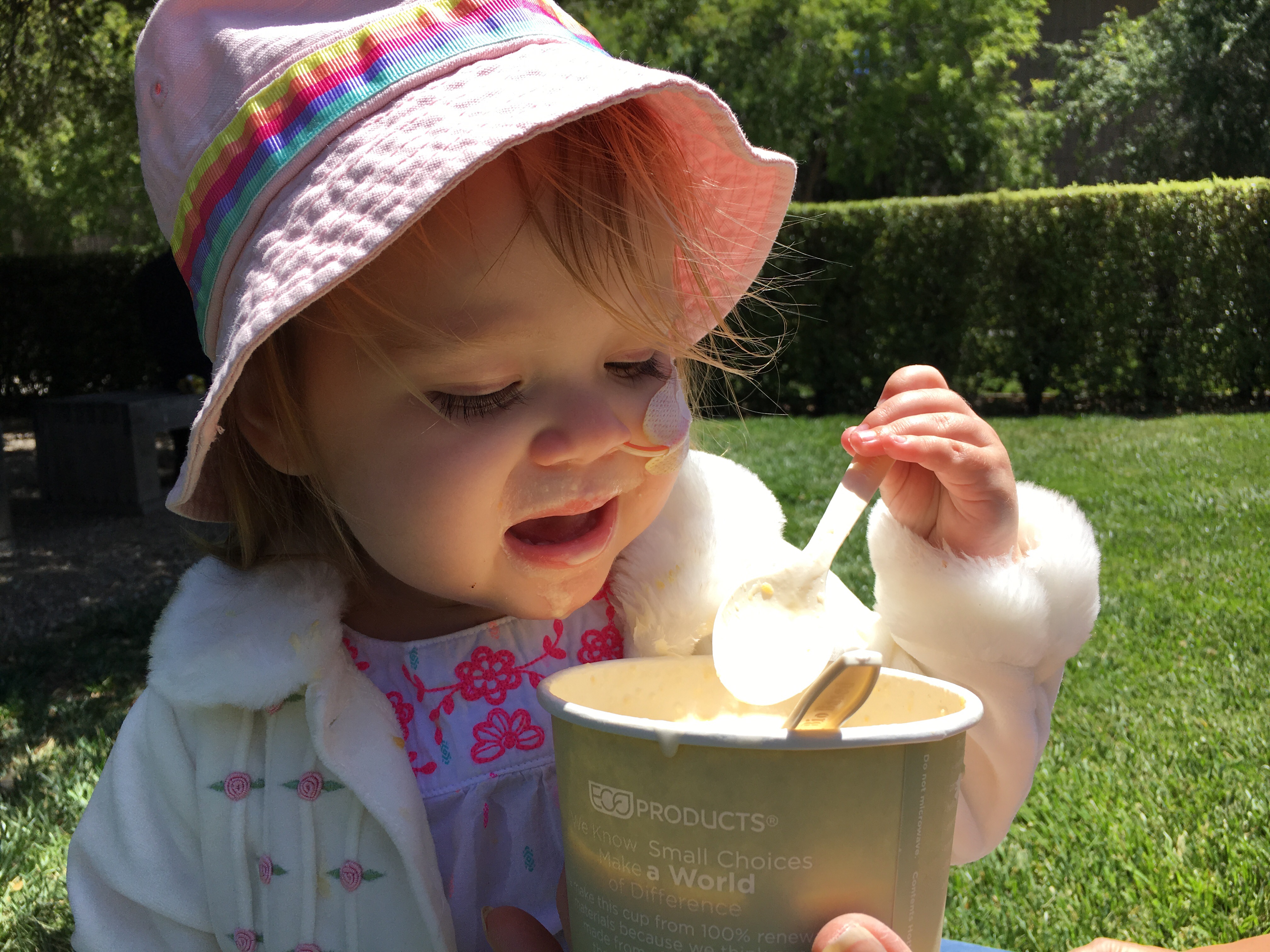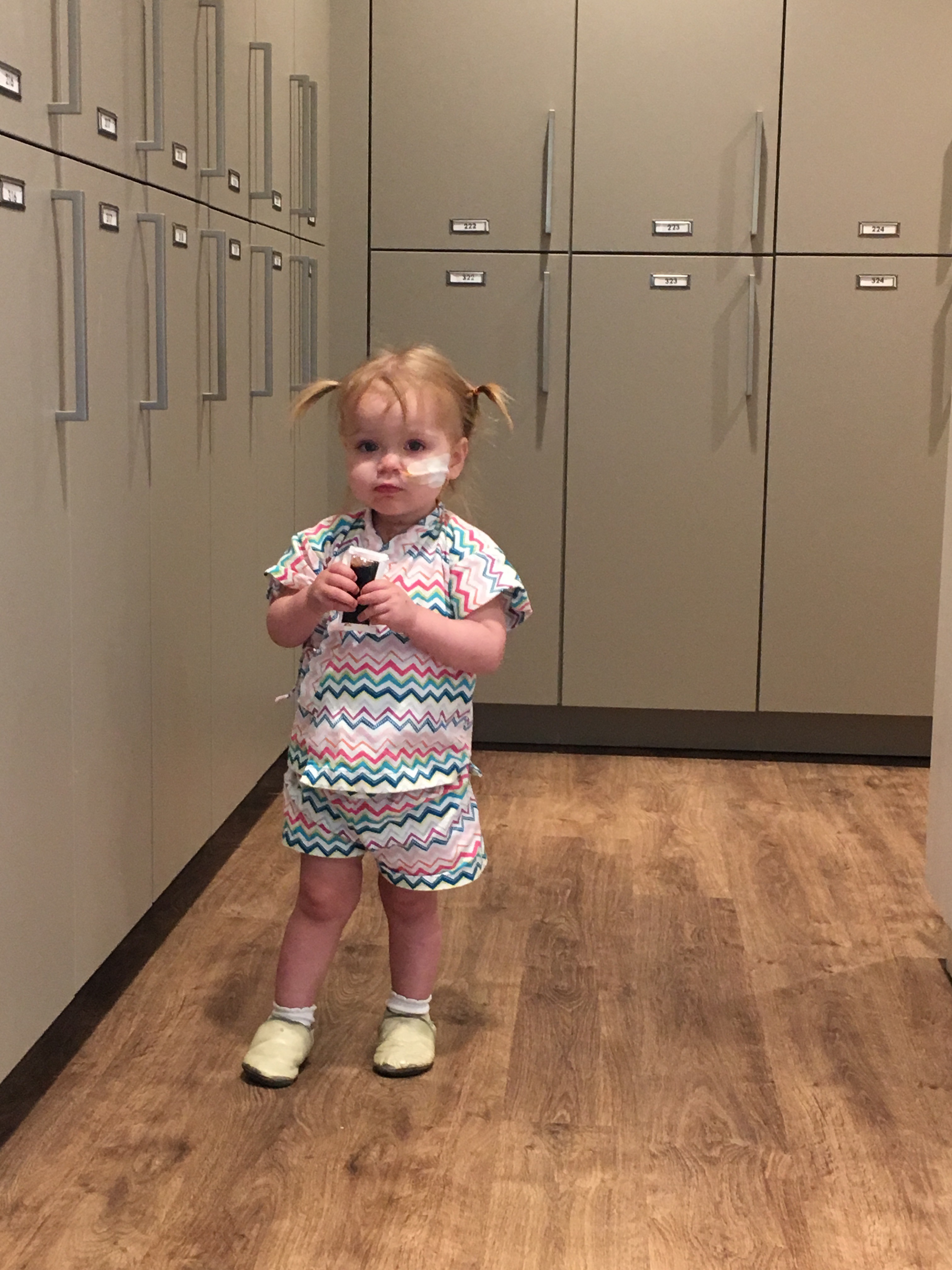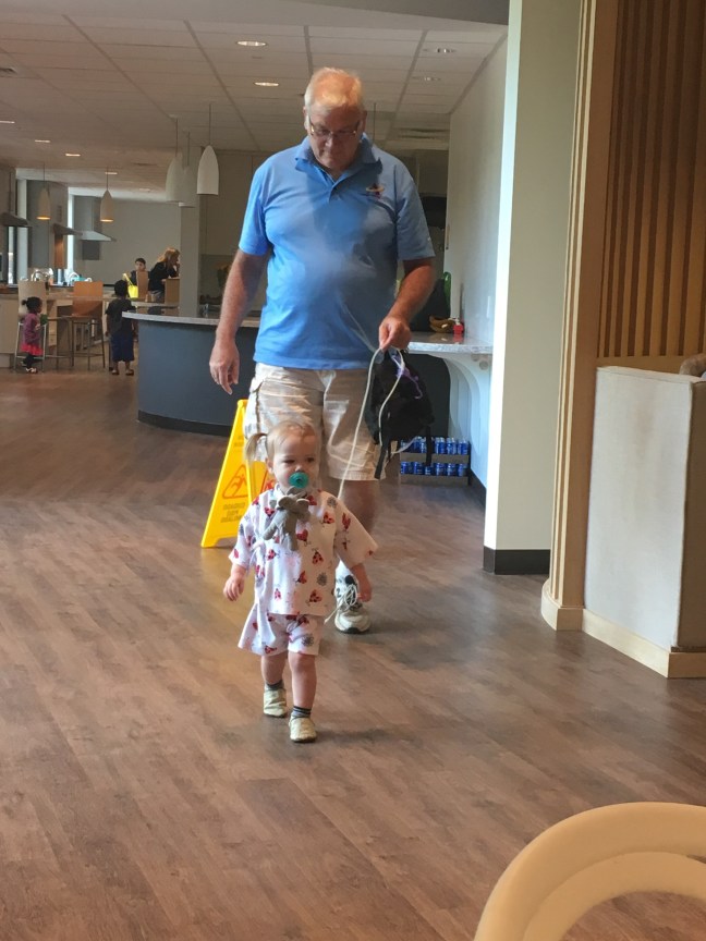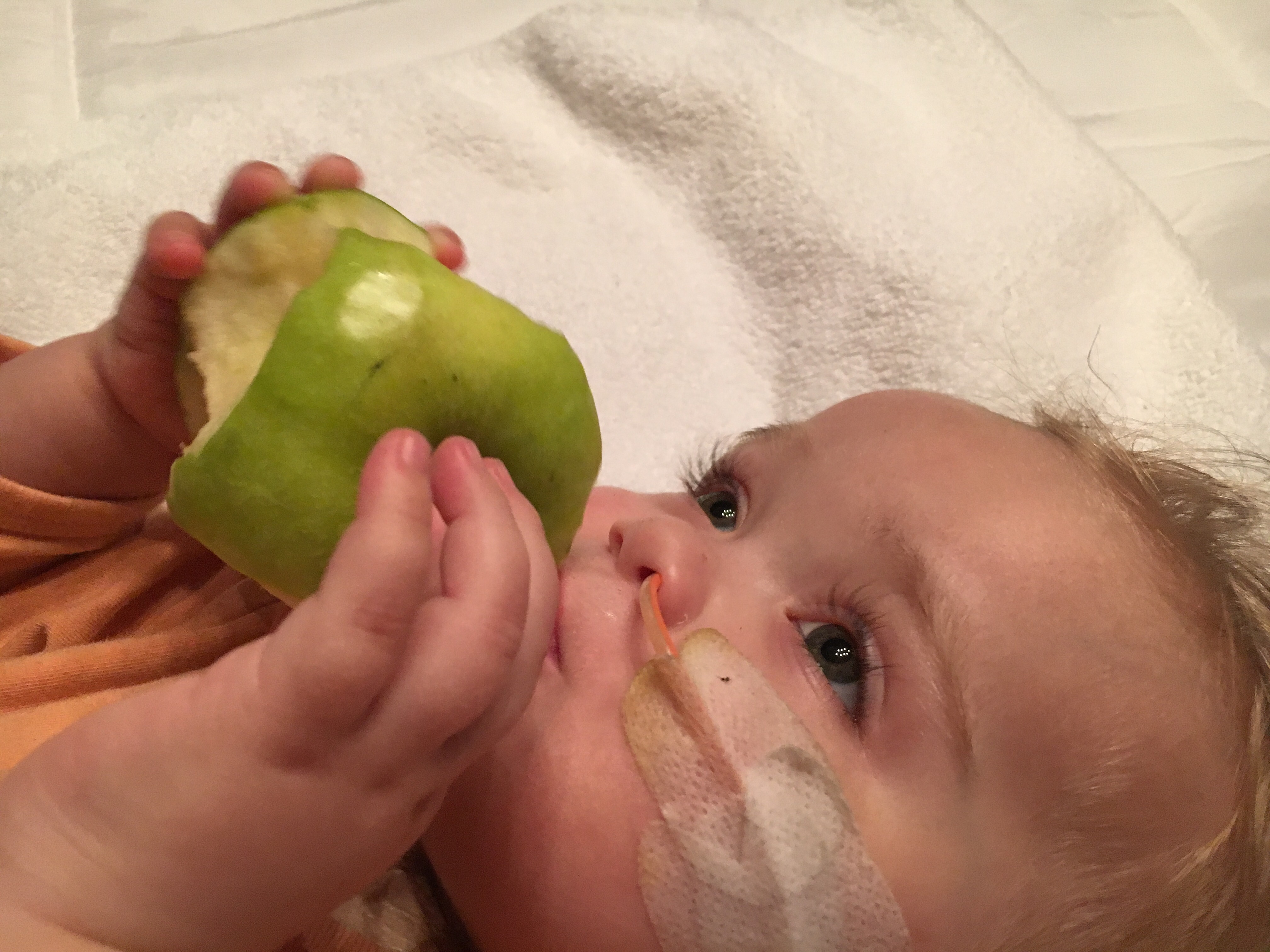 In other news, Hana continues to do well. She loves being outside more than anything (she always did, even as a little baby). She likes watching the big kids play! She had speech therapy at the outpatient clinic, which went very well. She has been enjoying time with my parents who are getting ready to leave over the next couple of days. She is starting to nibble on food more often! She seems very happy! (Thank you to whoever sent the new mask!)