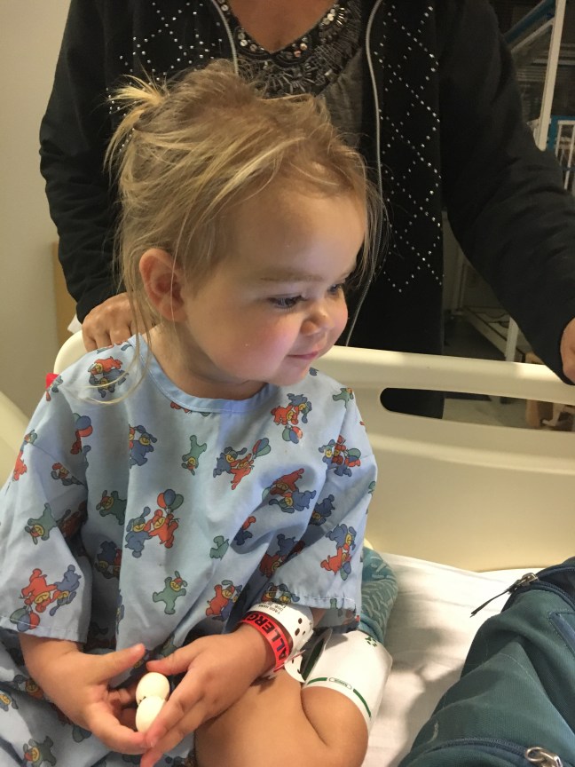 I was surprised when the pediatric cardiologist walked with us next door to the Emergency Department at the hospital. She stayed until they had Hana hooked up to the monitor, my first of many, many experiences with this. She had explained that an ambulance would come as soon as possible to transfer Hana to UCSF hospital across town. It was the brand new hospital, only opened one week. The pediatrician came into the emergency department to talk with us too. She was just checking in with us and she gave me her personal cell phone number to call her if I ever had any question, I could call her at any time. I remember Paul getting there and staying with Hana so I could go outside to make a phone call (the reception in the emergency department is terrible. I remember telling my parents what was going on – it was an enlarged heart, they were transferring her to the big, prestigious hospital across town, we had to cancel our trip to Hawaii and could they let my sister know (we were going to Hawaii to visit her). My parents were sitting in their car in the parking lot outside of a restaurant, waiting to go inside to celebrate my grandmother’s 96th birthday. My dad asked if I needed my mom (the pediatric nurse) to fly out. I felt like a child – a scared, lost child who needed her mom. I always think “no” to those kinds of questions. Can Paul and I handle this ourselves? Of course we can. But should we? I croaked out a “yes”.