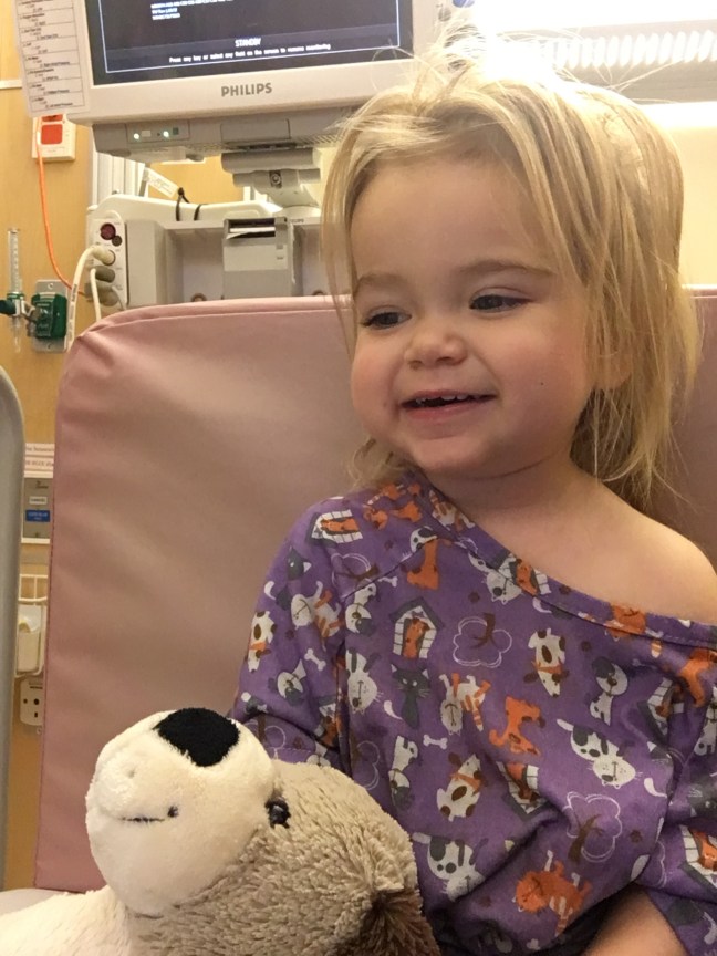 I remember seeing Judy and Neal through the doors of the Emergency Department. They were standing looking into our room. They would take our dog Poppy. I remember being relieved that someone local was near and ready to help. I remember watching Paul walk out of the Emergency Department with that empty stroller, so he could take it just four blocks back to our home and then meet us at UCSF. I remember texting a couple of people on the ambulance ride to the new hospital. My friend Lisa and my friend Rose. Hana was asleep in her carseat in the ambulance. I remember arriving at some back entrance to the hospital and going up to the CICU into a room no other patient had yet occupied in this new hospital. The staff was still trying to find the supply room. I remember the attending physician happened to be the head of pediatric cardiology at the hospital. She and a neonatologist worked to get IVs started and maybe an arterial line? Hana was crying and fussy and wouldn’t be still. They were having a very, very hard time even to get an IV going. Paul and I were bent over her bed for hours showing Hana her favorite book from home. We talked and whispered and sang and tried to keep her calm. It seemed very important, whatever the cardiologist and the neonatologist were doing. I remember the cardiologist taking out her phone and calling her friend to tell her she wasn’t going to make it to the big birthday dinner of their other friend that night, she had to stay at the hospital. Eventually they gave up and decided to go with the two IVs. We were supposed to rest. I remember looking down at Hana in a hospital bed and in a hospital gown with all the lines hooked up to her thinking, “How did this happen so fast? How did we wake up this morning thinking our baby was just a little sick?” I was exhausted and I wanted to sleep and yet, I didn’t. How could I sleep when my baby was like this? I remember thinking, “I hope this is the worst day of my life.” I think deep down I already knew the worst was yet to come.